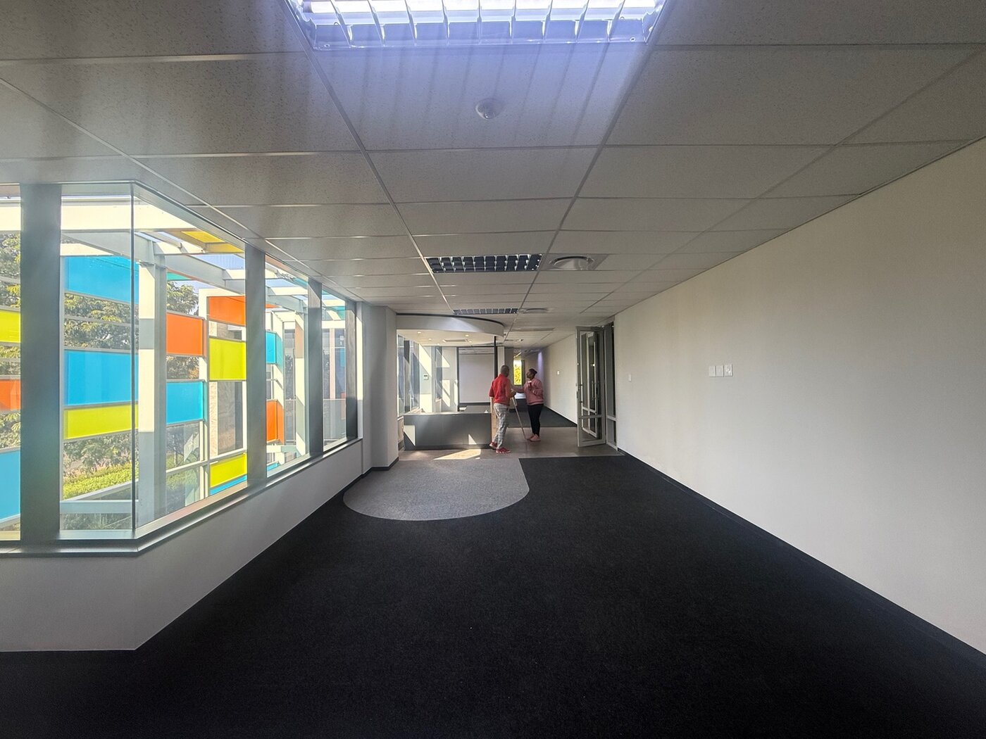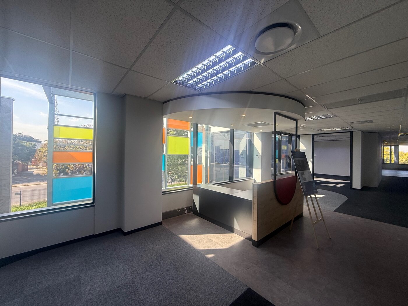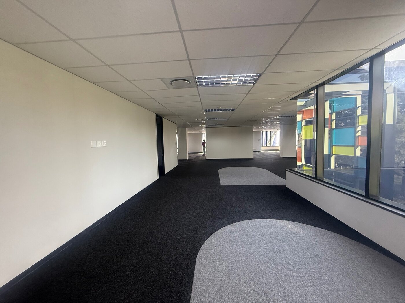 A modern first-floor office for rent in 2929 on Main in Bryanston, offering workspace spanning 412 sqm. This office space features advanced energy-efficient systems, including electricity-saving and water management features, as part of a Green Star-rated property. Currently used as a recording studio, the office will be white-boxed to accommodate your specific needs, allowing for a seamless move-in experience. The layout includes multiple offices, a reception area, boardrooms, and smaller meeting pods to support productivity.