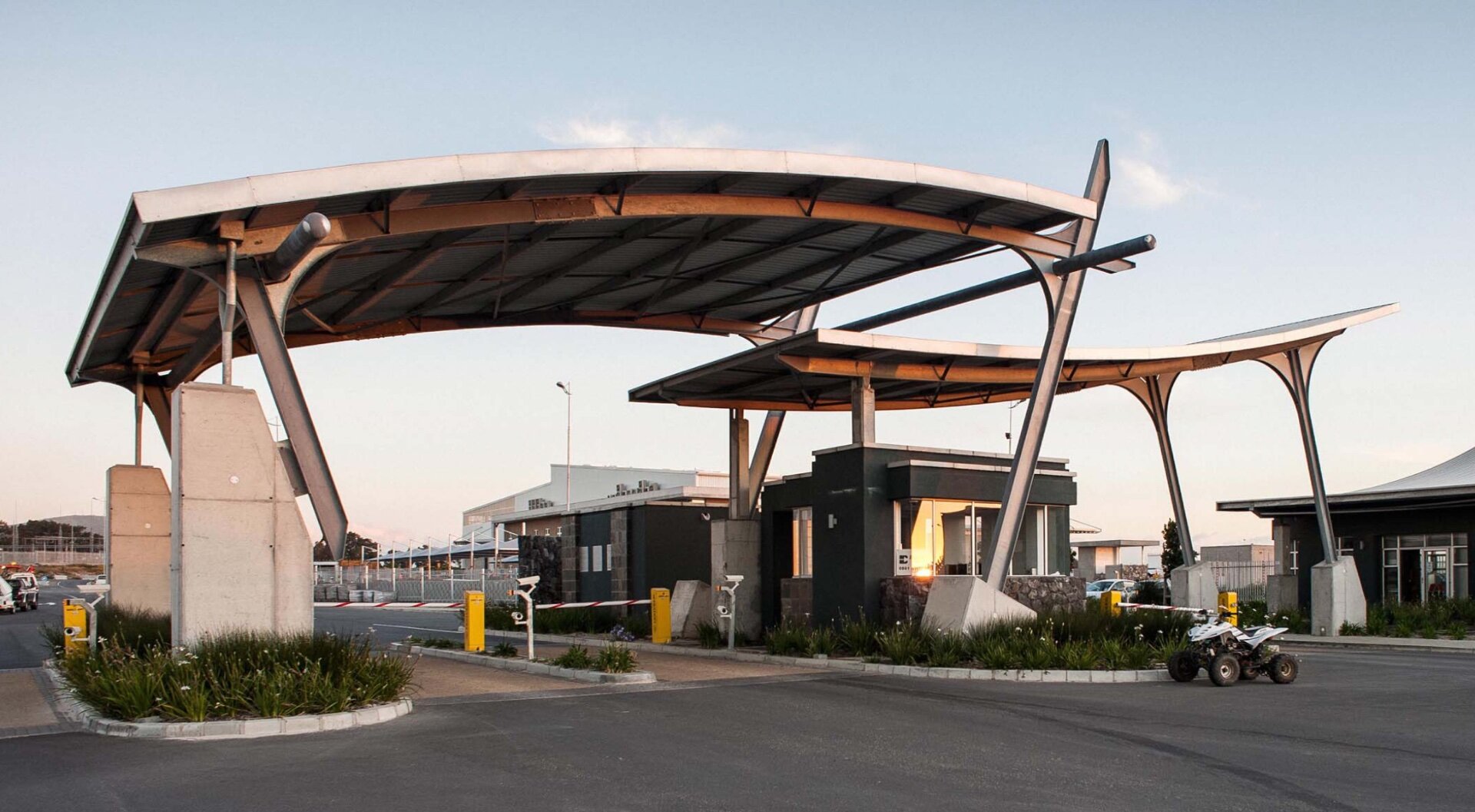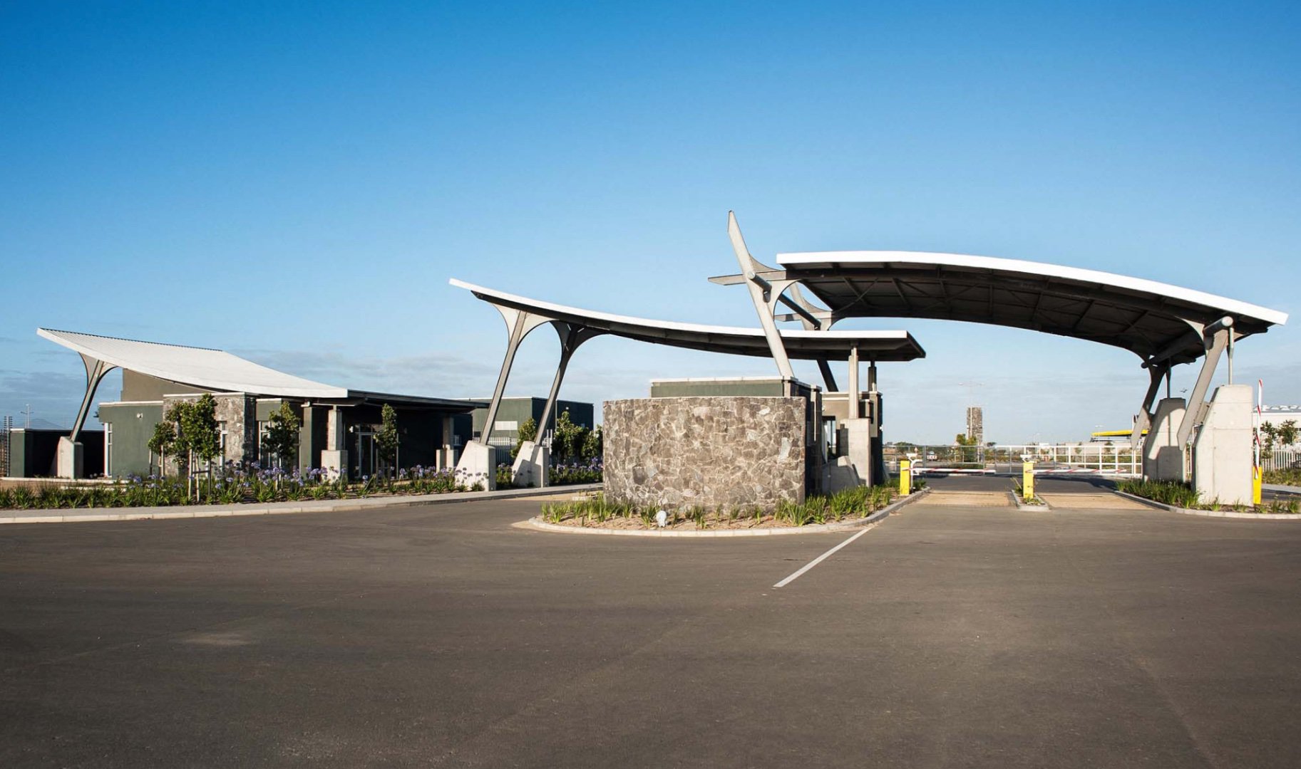 Own access gate and guard house.