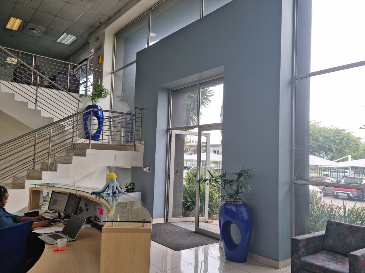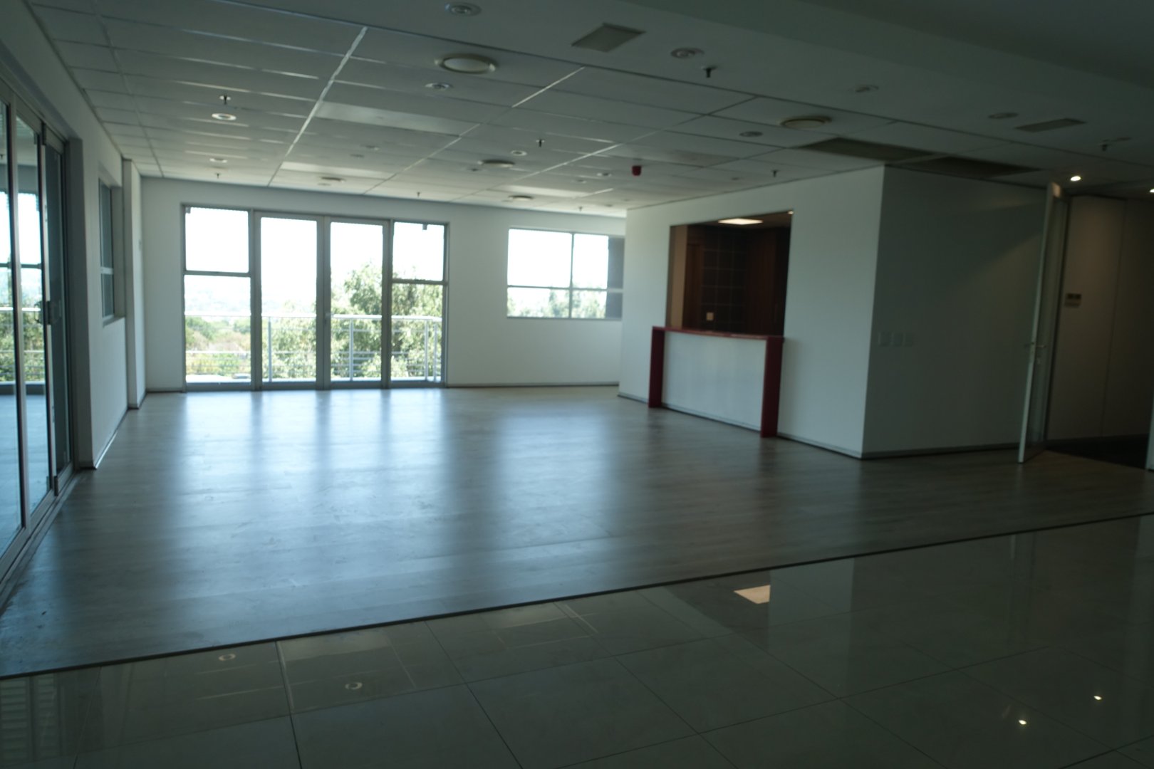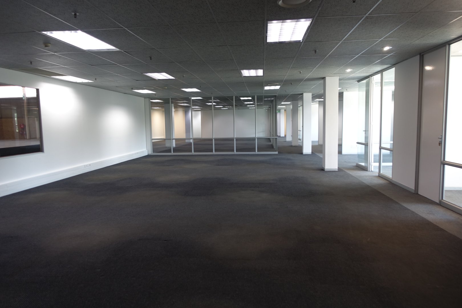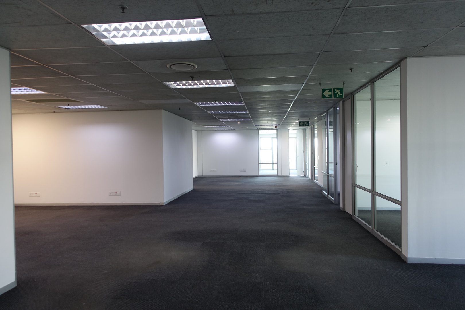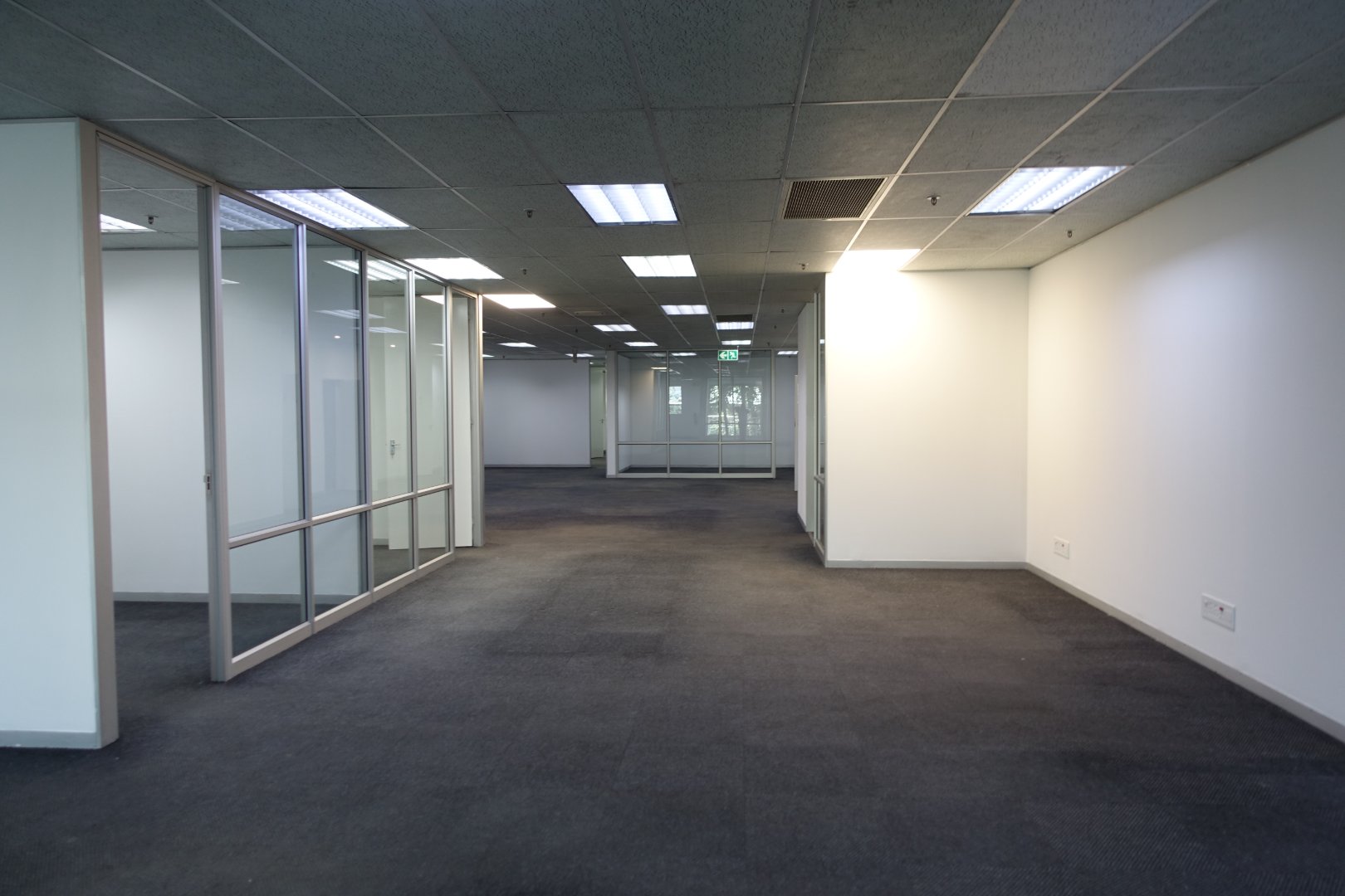 The offices are made up of a neat reception area, boardroom, meeting rooms, secular offices and open plan